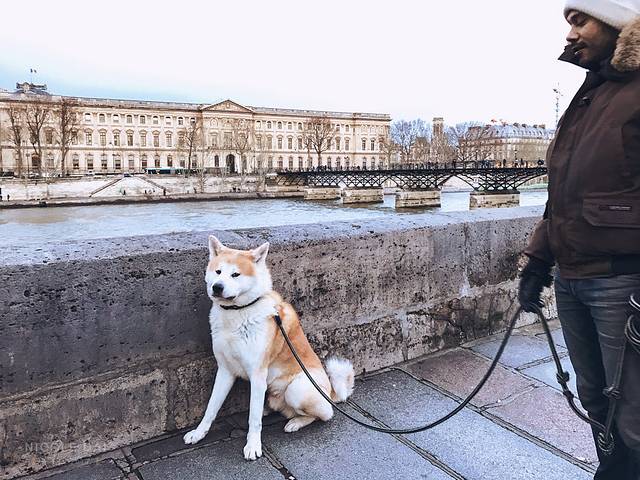 在塞纳河旁,吹着和风漫步。途中遇到了一只秋田犬。镜头感还挺好的嘿!就是我把它拍得高冷了一丢丢。主人特别友好,允许我的同学过去摸狗狗,治愈了她好久没撸狗的瘾。