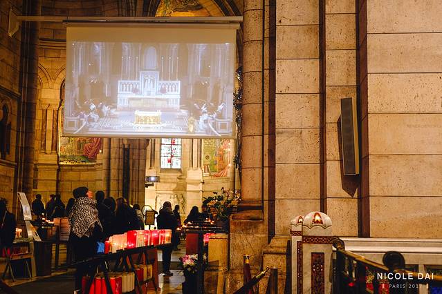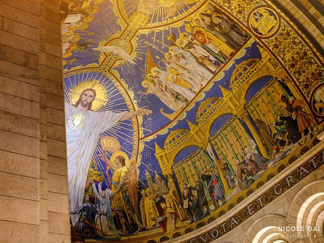 之前在网上查了查法国圣心大教堂,知道了它是花了44年才建成的建筑,里面还有一只全法国最大的钟楼,敲响之后可以响彻巴黎城。其实因为我没有宗教信仰,所以对宗教建筑没有那么感兴趣。去圣心大教堂纯粹就是欣赏一下建筑。进去的时候正好碰到天主教教徒在做集体礼拜,感觉好神圣,很肃穆,虔诚的教徒你能看出来他们在祈祷时认真的神情..