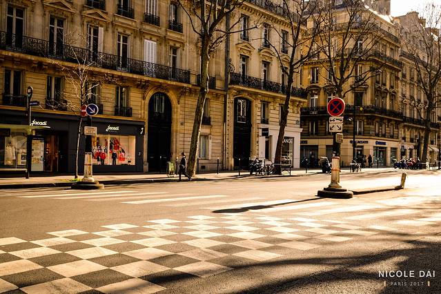 巴黎棋盘似的马路非常漂亮,午后的阳光洒下来,整条马路就沉浸在香槟色的浪漫中..