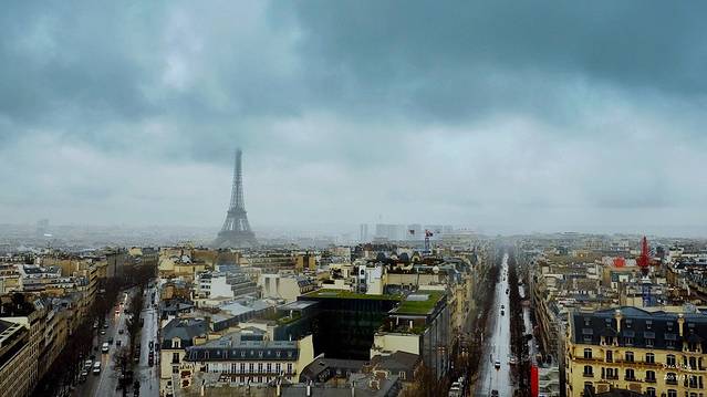 讲真,飞机开始向戴高乐机场着陆的时候,我有点小忧伤,因为出门的时候苏格兰好不容易晴空万里了一次,结果到了巴黎迎接我们的是绵绵春雨,天色阴沉沉的,天气预报成了天气乱报……