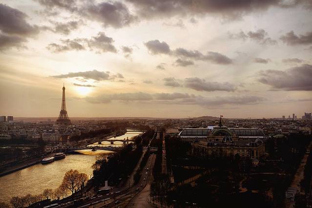傍晚,夜幕开始降临,经常能看见空中有客机送着一批不舍的游客远去,又迎来一批新人缔结与巴黎的缘分,乐此不疲。
