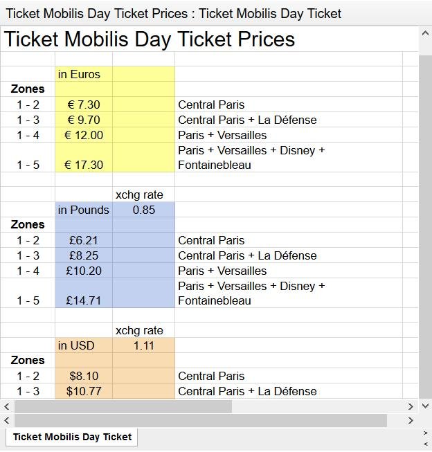 关于详细的地铁的时间表、价格以及地铁路线图可以去巴黎地铁官网看一看。如下图显示的天票票价,即使用美元或者英镑买票,官方也贴心地换算好了~所以小伙伴们可以根据自己的路线需要收藏有用的交通信息~