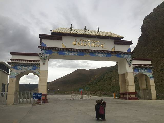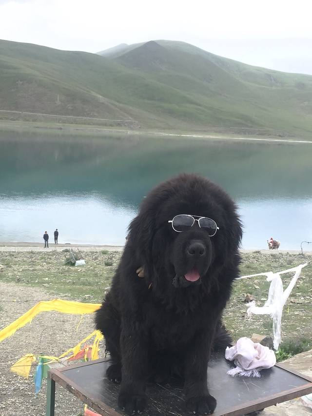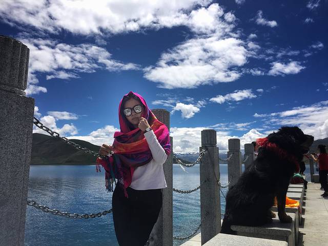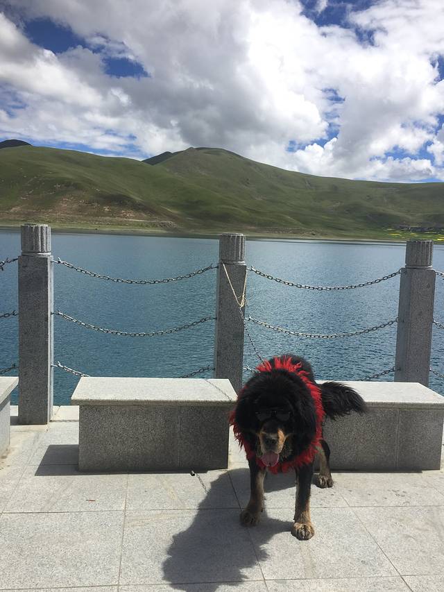 偷偷地站在藏獒旁,你再靠近点,就要给钱了,这里拍个写着羊卓雍措石碑都要钱。