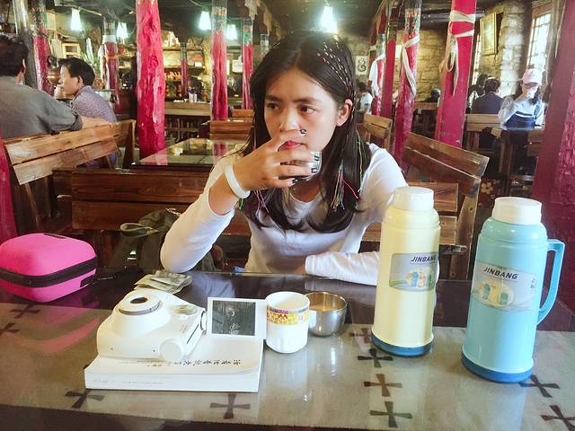 在大昭寺广场呼吸着拉萨午后的太阳,喝着5块钱一壶的酥油茶。比起玛吉拉米的莲蓬,我更喜欢在喜鹊阁看人来来往往,也许幸福就掖在这藏地的阳光。我应该算是一个特别的人,不然我为什么会喜欢甜茶加咸的酥油茶,喜欢这段漫不经心的经历。