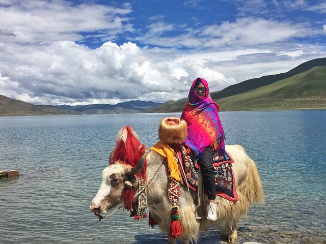 记得带上鲜艳的丝巾或者穿上红裙子哦,在羊湖又被穿着红裙子的女生抢去不少镜头。