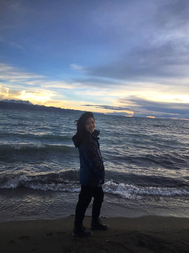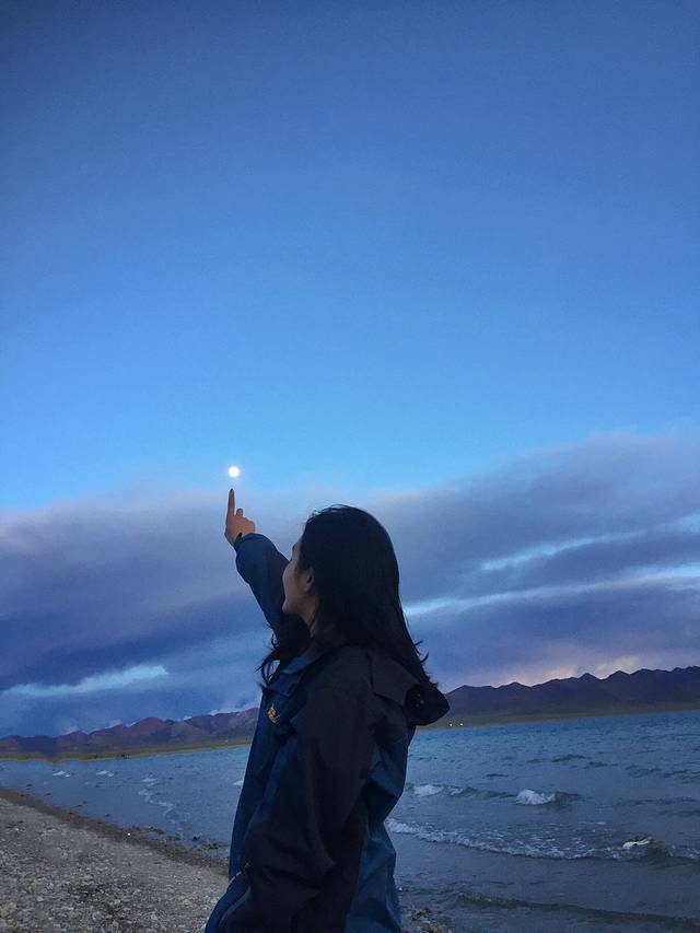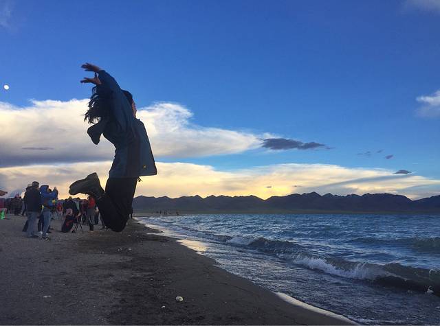 这是阿根拍的原图,我们三个女孩子坐得有点不想走,真心美得不像话,青海湖跟羊湖比,不是一个级别。