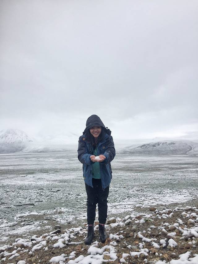 下雪啦啦啦,八月飞雪呀,壮观得不行了。激动得我蹦蹦跳跳,第一次见雪啊,这种白让人震撼不已啊。我玩得忘记了冷,在那捏雪啊,还想堆个雪人,她们说把我扔在那好了哈哈,原来我的牙差不多跟雪那么白,眼睛都快瞪出来了。激动得我现在还没平复,一直在车上哇哇叫。这次西藏之旅,值值值值值值值。
