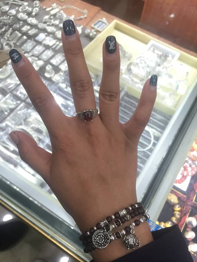 在大昭寺广场的银饰批发店买了几个配件准备串一条石榴石。