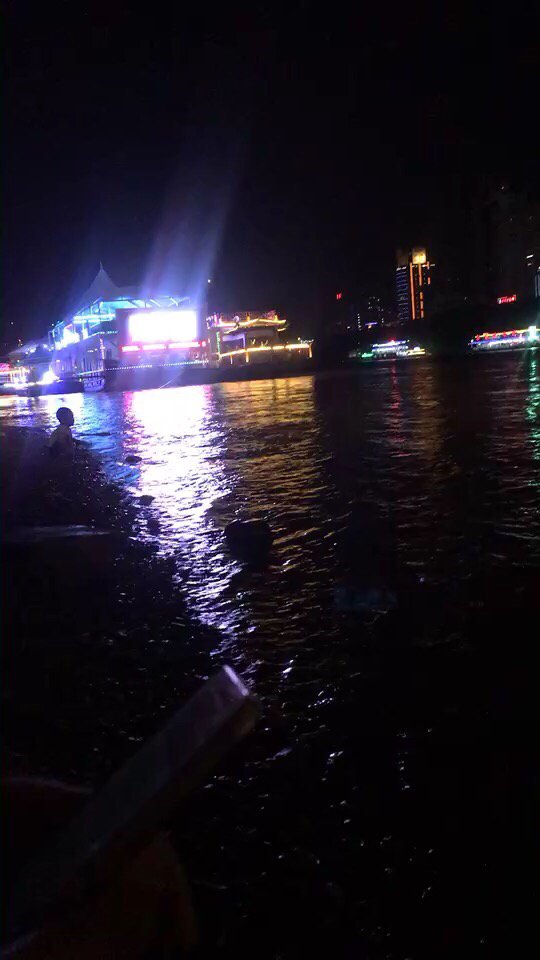 河边有邮轮乘坐,游览黄河两岸的夜景