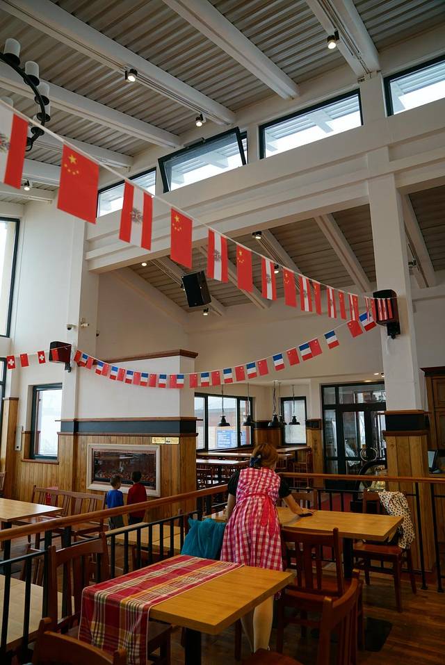 山顶餐厅,主厨是热爱山地运动的欧洲人,味道很正宗,我们去吃的自助餐,好多硬菜。外墙壁画是一个热爱山地运动的画家作的,每天都是徒步上山来画的。
