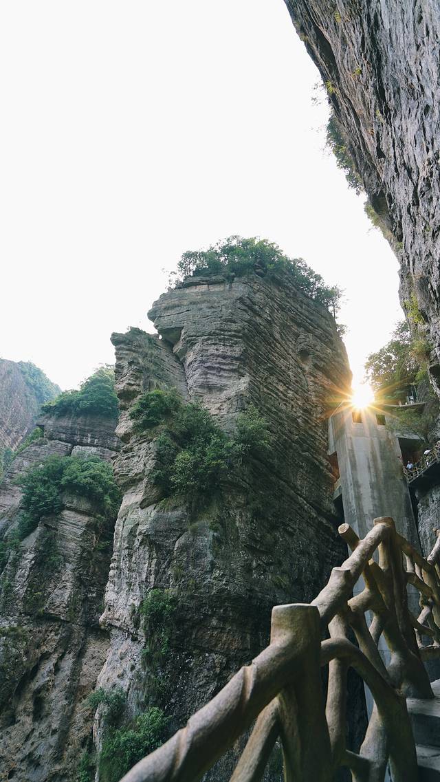 傍晚夕阳下,上山途中,夕阳在两座巨大的山体中间,照向我们。我们感叹于大自然的这般的鬼斧神工,让我们能见识到如此美景,夕阳与奇山的搭配,也有一番不同的景色。
