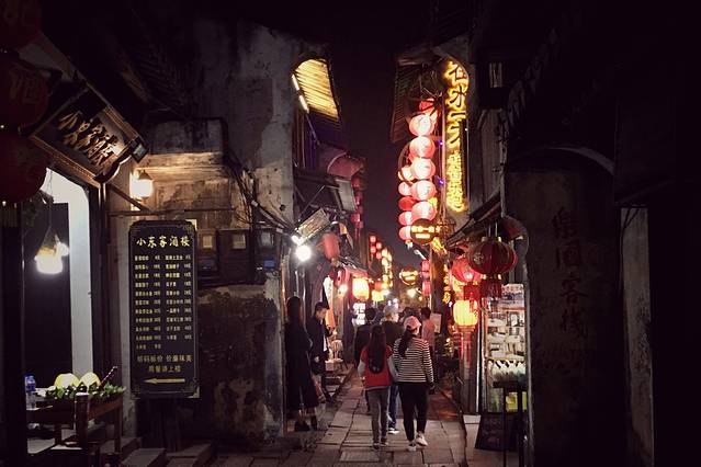到西塘的时候已经是晚上了,放下行李直接去了古镇。古镇离住宿的酒店步行两分钟的样子,很快就到了。