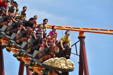 继续前行,接下来就是比较好玩的地方了——丛林冒险,都是惊险的体验项目,彩虹之巅绝对留下你发自内心的尖叫,双雄展翅会颠倒你的世界,感受奇妙的翻转,雨林飞鹰带你穿梭雨林,这个思聪推荐的心形过山车绝对满分,在速度与激情下你总会下说点什么,不是喊点什么。再来体验下丛林劲舞你会瞬间发现烦恼什么的已经不存在了。年轻的伙伴们,丛林冒险是你不能错过的地方。