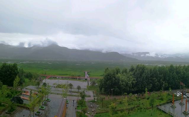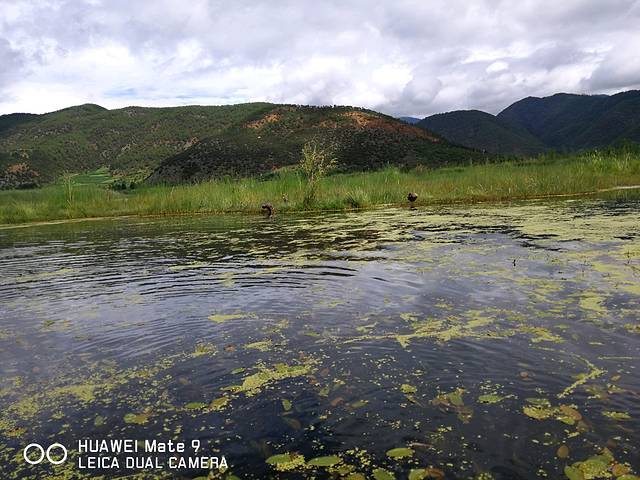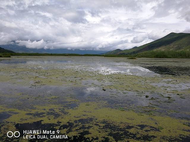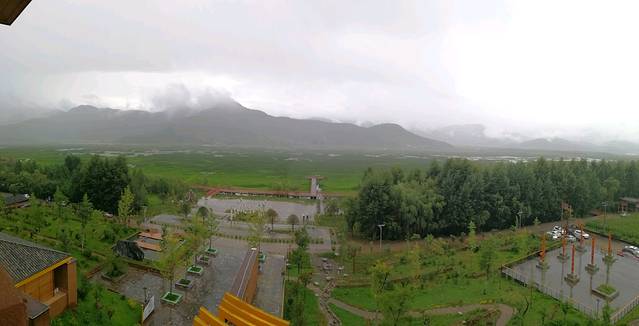 天公不作美,早上起床下雨了,幸好随车带雨伞,住在洛洼码头,放眼就是草海,站在高楼远眺整个草海