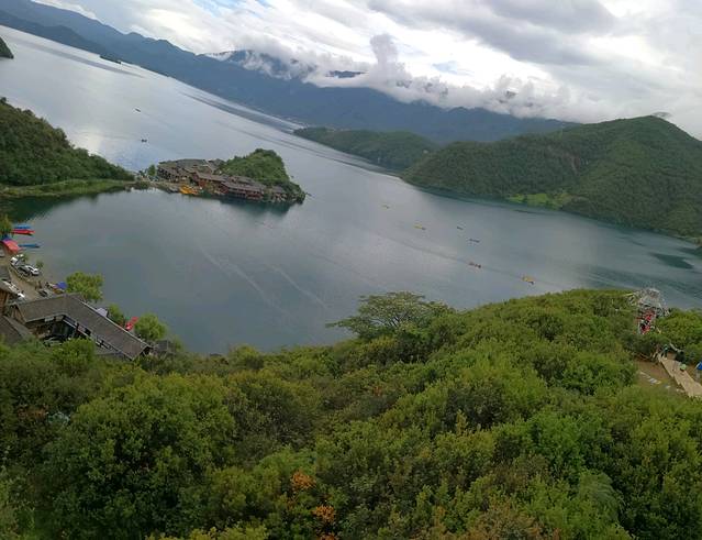 下午1点出发,又经过6小时的奔波,一路盘山路,途中休息两次,还有200公里,还有150公里,还有100公里,最后30公里,最后10公里,心情愈发激动,中午到了,泸沽湖!