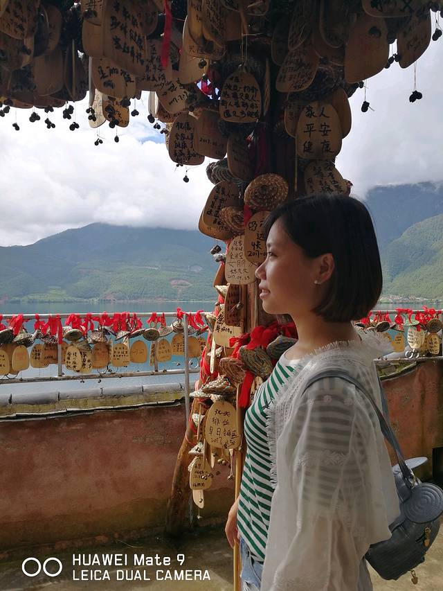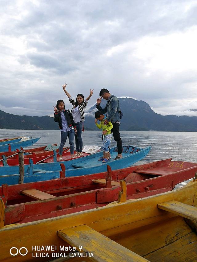 洛水村的地标,临近晚上,大家依旧是拍拍拍!记录美好的时刻,是要将泸沽湖带走的感觉