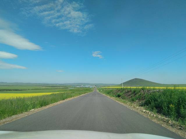 按老乡指的路走【嵯岗】大家一定要注意这个地名,后面的路太好了,虽说是县道,但全是新修的水泥路面,车很少,也没限速,而且路两边是名副其实是大草原,一眼看不到边,没有山,草也很好,按地图指示两边会时不时的有小河,但我们去的时间下雨太少,都干涸了,要是有水一定景色不错。这条路一直到新巴尔虎左旗让你体会不一样的草原。