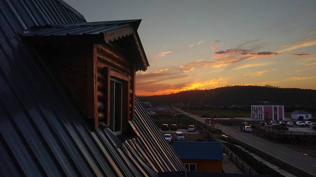 晚上逛了逛,总体感觉恩和还是不错的,镇子不大,但挺有特色,在小镇上可以坐上小马车一个10元,也可以骑马在街上穿行,还有双人自行车,说不定你还可以遇到从院子里溜达出来的小驴,商店卖俄罗斯大咧巴,蜜蜡的较多,蜜蜡便宜,看着都象假的。我们去的晚没去河过,看别人的游记,河边景色也很美,还可以戏水,这点我有点怀疑,因为水是真凉啊感觉有点刺骨,有人还让带上洞洞鞋,我也上当的带上了,结果一次没用,水太冷受不了。这里日落时间晚,晚上8点才日落,天边一道晚霞加上木刻楞尖尖的屋顶,随手拍了一张,朋友圈暴赞,说是单反拍的。早上4点多天就亮了,外面全是晨雾,别有一番味道。