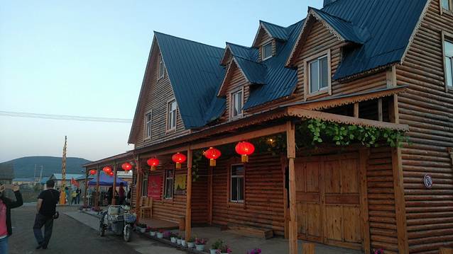 晚上19:30到达恩和俄罗斯风情小镇,入住俄情山庄,住的是俄罗斯风情的木刻楞,这里是旅游最冷的景点,晚上最低气温4度,我们晚上都穿上了薄羽绒服,冲锋衣,总之把最厚的衣服都穿上了。