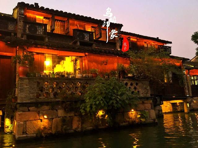逛了一天好累,但是一定不要太早出来,因为惊艳才刚刚开始,乌镇最出名的西栅夜景18:00才刚刚开始,还有艳丽的酒吧一条街,不过带着小米就不方便进去罗~