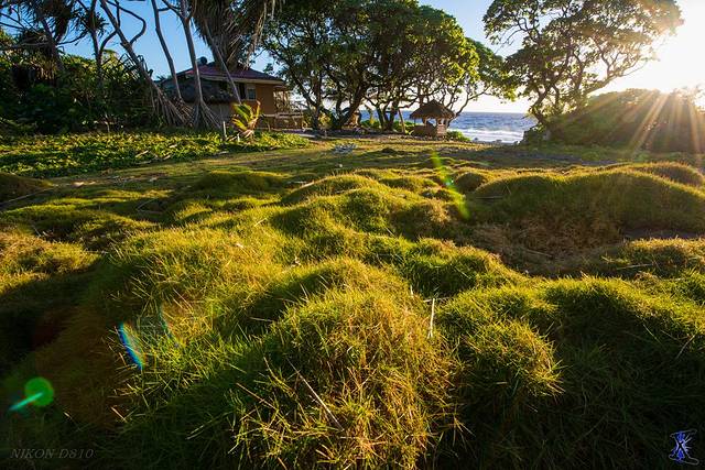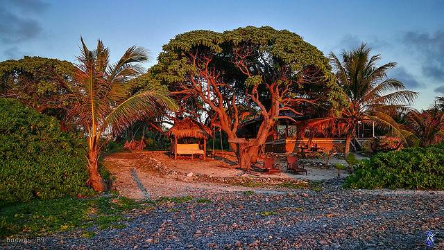 到达艾图塔基机场,即将入住GINA’S GARDEN,房主老太太Queen Tutai,6月份生了场大病去奥克兰手术刚回,派来伙计莎莉(一位有着棕黑色皮肤,梨形身材——大屁股的典型当地女人,对比后面几天她的简单T恤造型,那天的莎莉应该是盛装了,抹胸当地裙,佩戴头花,但是整体感觉还是松松垮垮,随随便便的样子)来接,她为Xy戴上小y期待已久的花环。莎莉话不多,不像前一位房主Nir那么善谈与热情,可是y更喜欢这种自然……