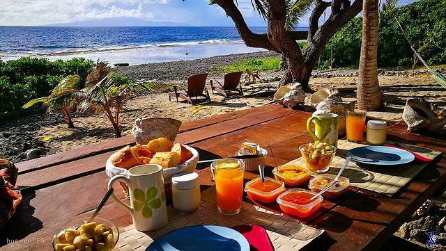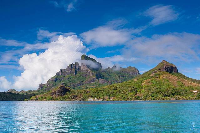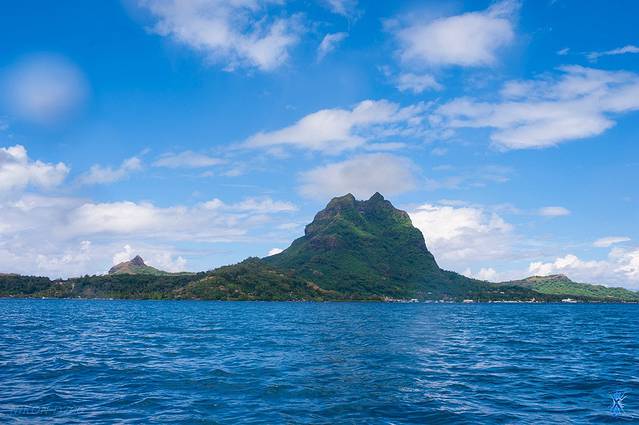 计划首先留宿位于环礁的克鲁索旅馆。旅馆老板,年轻粗犷的尼古拉斯驾小船来接。徜徉“蓝色鸡尾酒”上,吹着海风,奥特马鲁山随身而过。两天前对Xy还只是图片的波拉波拉,瞬时活了过来,心里有种说不出的兴奋、感动。