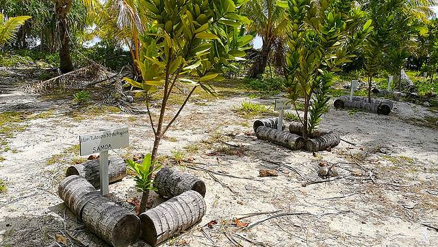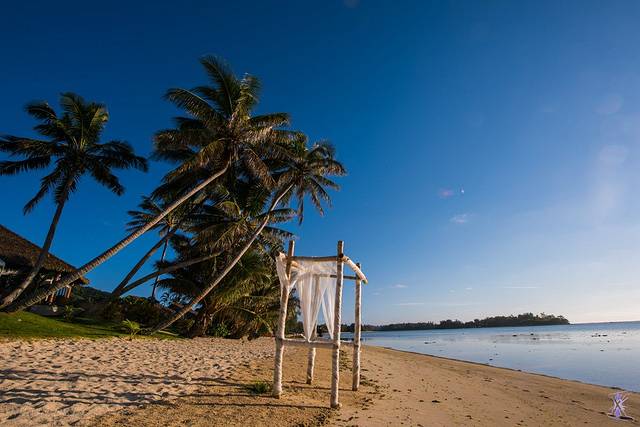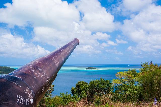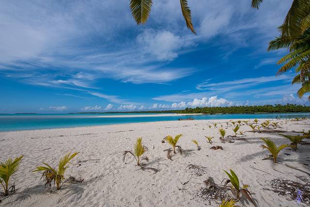 提供盖邮戳的小岛,前面有个长满小椰树的沙滩,一般游船都在这里靠岸。