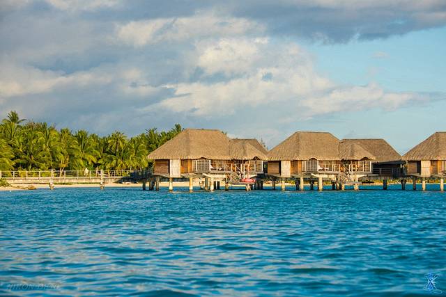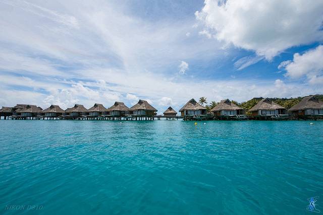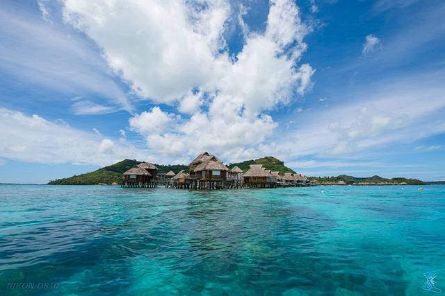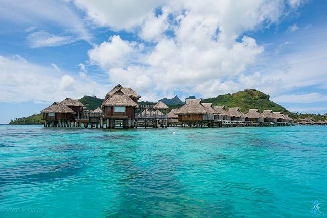 远眺Four Seasons Resort Bora Bora(波拉波拉四季度假酒店)水屋