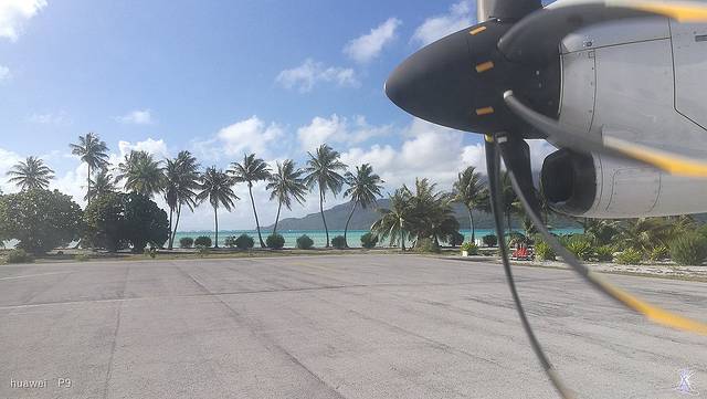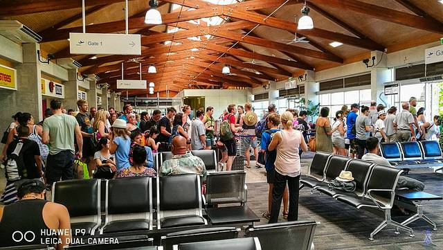 担心登机托运有麻烦,急匆匆赶往办票柜台,错过了迷住y的小黑哥music欢迎现场秀。。。。。意料之中,为行李再一次斗智斗勇(几个箱子来回倒腾衣物设备)……只因大溪地航空随身行李限5kg,单反党感受到了一丝歧视。。。最终顺利登机,to borabora……