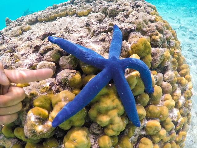 这一带挺适合浮潜。终于捞到了蓝色海星
