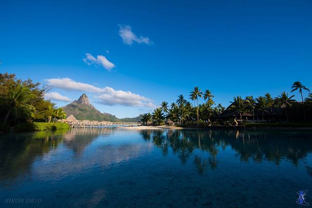 波拉波拉,这个陆地面积仅38平方公里的小岛,主岛和环礁间拥有大片清澈泻湖,是大溪地最具代表性的岛屿。它的海水蓝不是只有两个、三个色彩,而是有三个、四个、五个甚至更多色彩,随着天气不同,这些色彩又变化出更多不同的色彩。它的怀抱是一抔蓝色美酒,还没饮下,已经沉醉。来一句俗气却又精准的话,波拉波拉归来,不看水!留待大家有机会品鉴了。