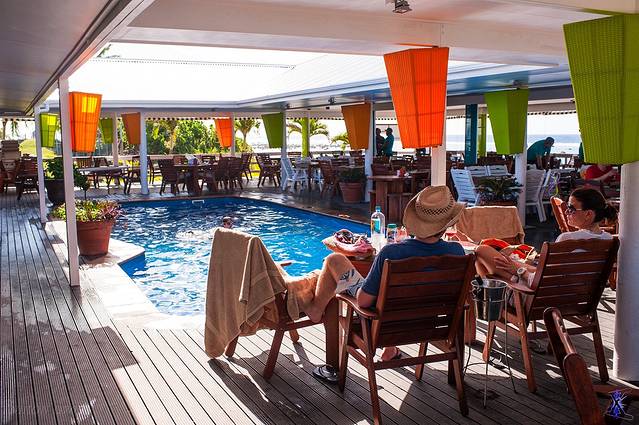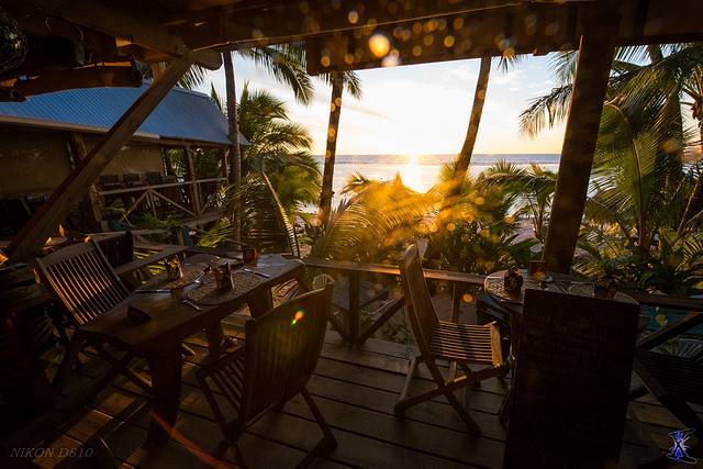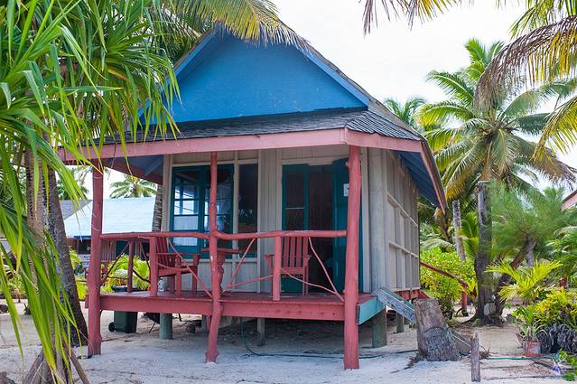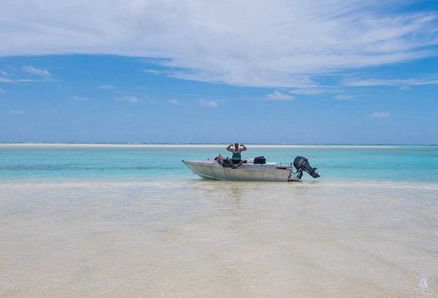尼古拉斯的小船并未停靠码头,而是至浅滩尚未搁浅处停下,他搬行李,一起淌水上岸。起初还以为是这里特色,过后几天才发现,几乎所有的酒店都建有码头,只有克鲁索未面对泻湖,没有码头。