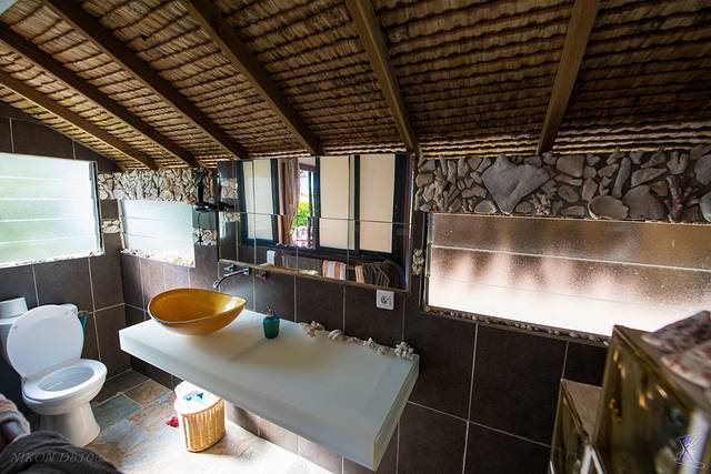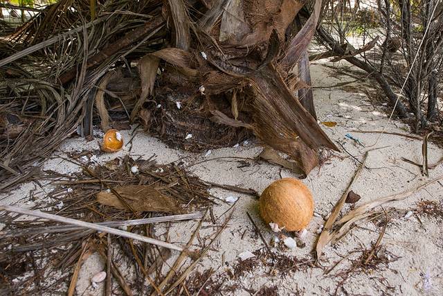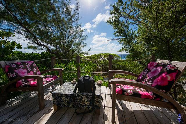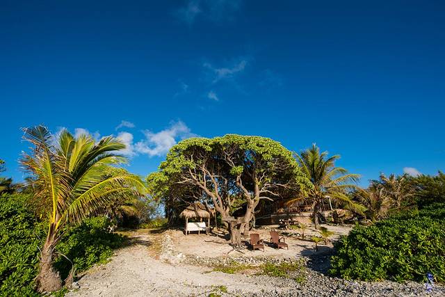 上岸后,穿越一片小树林,3分钟时间,就能到达克鲁索。路上,尼古拉斯开始给介绍情况——岸左边是一户不友好的人家,且有恶狗,不可以去他的沙滩;岸右边是伊甸酒店,最好别去;小路前面的沙滩(伊甸和不友好人家之间的弹丸之地,约五米宽),可以玩;环礁用水,全靠下雨蓄水,一天只能冲凉一次,尽量用最快的速度……这是下马威吗?
