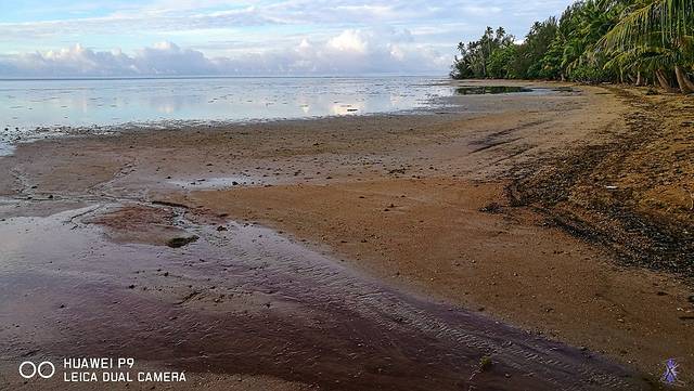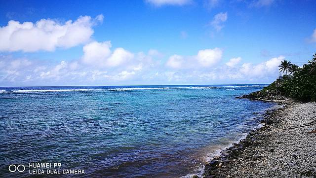 同一时间同一设备,阳光是否直射对海水色彩影响蛮大