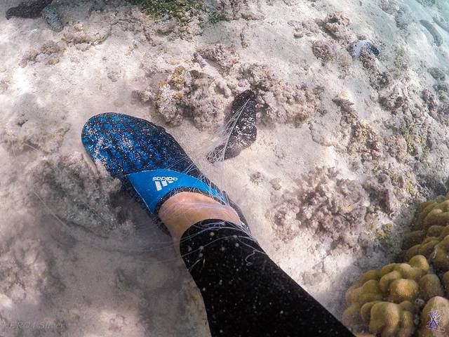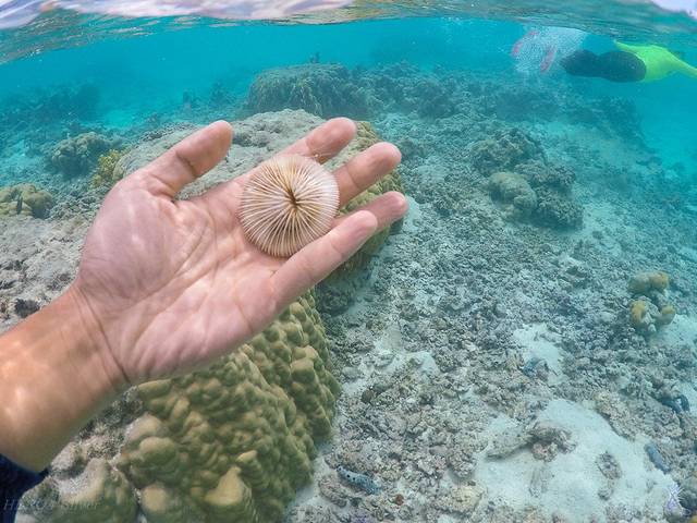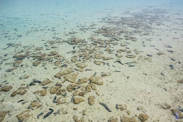 几个一日游的游客直接泡在靠近外环礁这边的浅滩,这星星点点密密麻麻的都是海参(图太小,看不太出来)