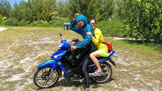 正好,莎莉带X去找租船的,驾摩托跟着莎莉熟悉一下。莎莉的体型已是很胖了,跟右边这伙计一比还算苗条啊。。。。一路上,每个人都会给你打招呼,微笑😊真是太友好了,比borabora不知道亲切多少