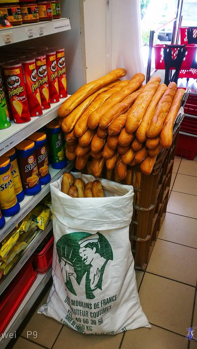 法属领地,超市法棍这样卖,哈哈。这里物价挺高,唯一觉得便宜的是依云矿泉水,1.5升的大瓶仅要十多块人民币