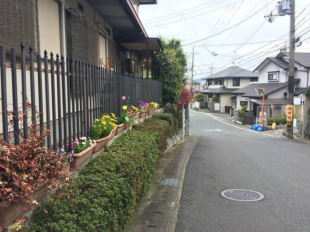 这户人家虽然不似京都民宿附近的人家装修高档,可是从小花园看上去都是精心装扮的,花园的茂密植物和门口的小花小草可是一点儿也不马虎,一样别致