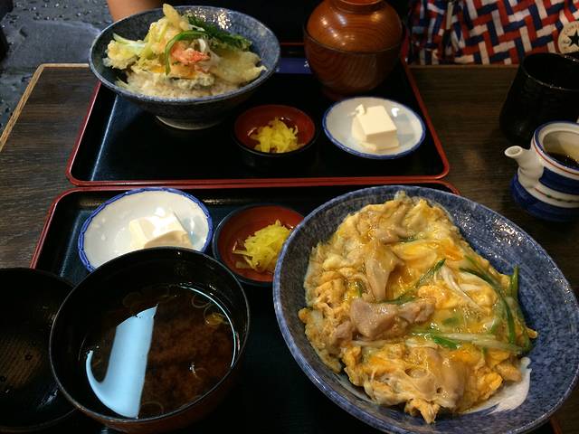 天妇罗饭&亲子饭。味道还可以,硬是要形容的话,那就比很多“景点餐”好吃。