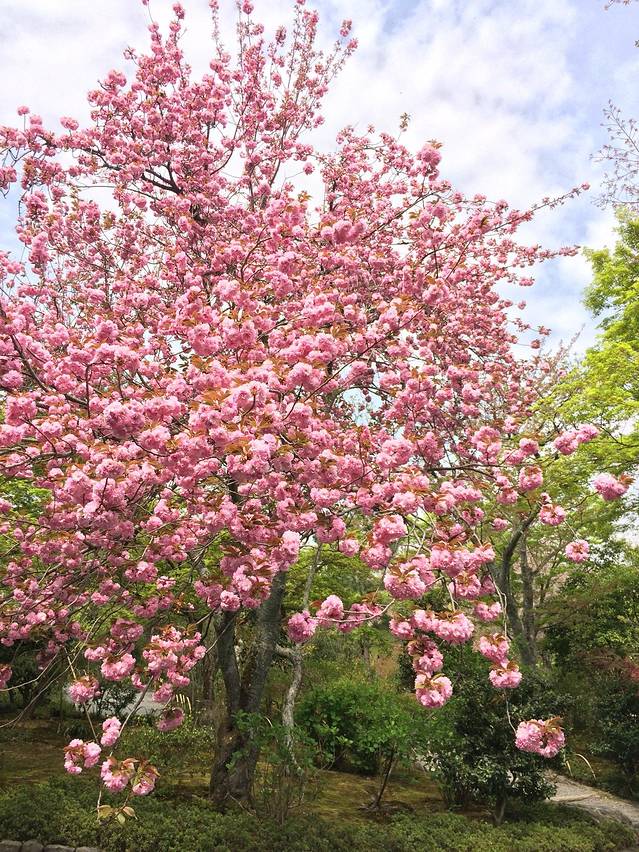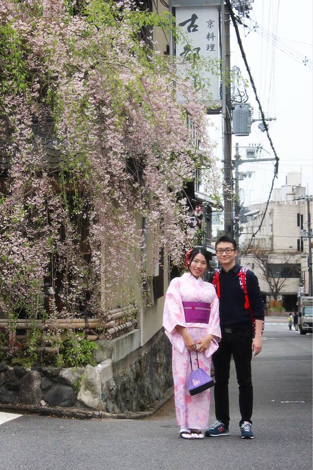 八坂神社附近一家看上去很高级的饭馆,门口有一株盛大的垂樱。比起景点人少很多,一个可爱的同胞见到我们就用普通话问我们“你们也是中国人吗?”于是不客气地让他帮忙拍照。。。
