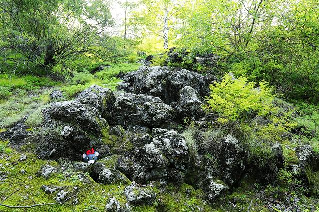 刚步入龙门石寨,就落入这满眼如翡翠的绿,空气中满盈着雨后芳草的清香,忍不住要在栈道上跳跃的心情。龙门石寨是火山喷发后生命复苏演变的见证,这里有典型的28-34万年前的火山地质遗迹,有近千种植物,如白桦、黑桦、蒙古栎、兴安落叶松、红皮云松、云杉、枫树、椴树、白杨、山杨、杜鹃、柞树、黄菠萝、接骨木、花楸树、爬地松等满目皆是。