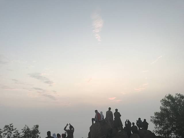 5点到达日观峰,已经有很多人在等着了,我们没有租大衣,当时爬了四个多小时山,很热,而且马上就要日出了,觉得没有必要了,也确实没有觉得很冷。