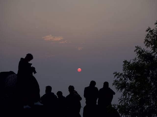 当天的日出时间是5:17,到时间还没有一点太阳的身影,大概又过了7分钟,太阳突然冒出来了。