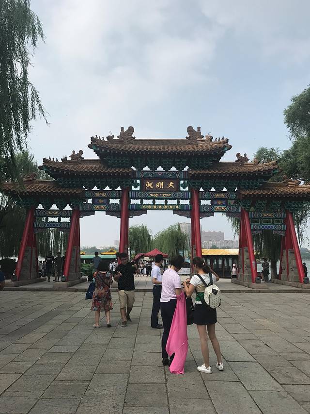大明湖很大,不收门票,有时间就自己走走,没时间或者怕累就建议坐船或坐车。我没有坐船或坐车,想慢慢感受夏雨荷呆过的地方。我是进门向右走的,走到超然楼就往回走了。