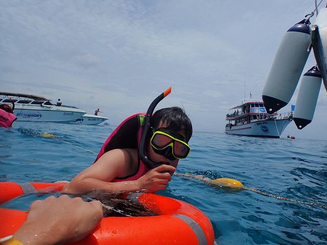 关于浮潜工具不用自备,船员都会提供。会有眼镜和咬嘴,都是一次性的。最爽最爽的是有冰镇可乐任喝!