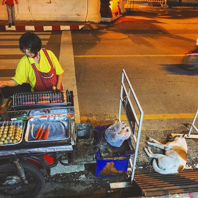 在夏天,你会看见很多狗在7-11便利门口待着吹空调。都是泰国人都不会赶他们走