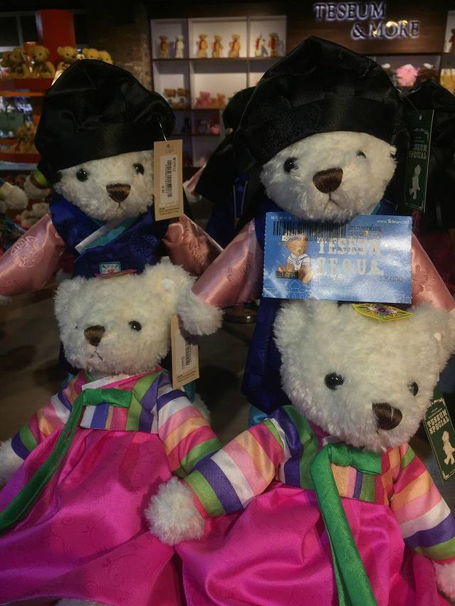 泰迪熊也分了很多主题,有海洋,还有穿韩服的泰迪熊。