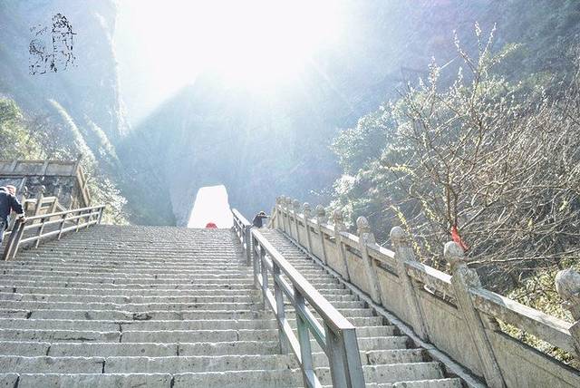 环保车停在天门洞下,一下环保车就有一个游客拍照的最佳地方,不过收费,登天梯999级台阶到达天门洞口