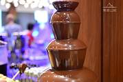 看看这就是巧克力瀑布,热。热的巧克力,源源不断的流下,把水果送到里面,镀一层巧克力,然后放到冰水里冻一下,马上水果巧克力就好了,可以吃了,是不是很神奇哦,其实这是为小朋友设置的,因为小朋友最爱巧克力呀。