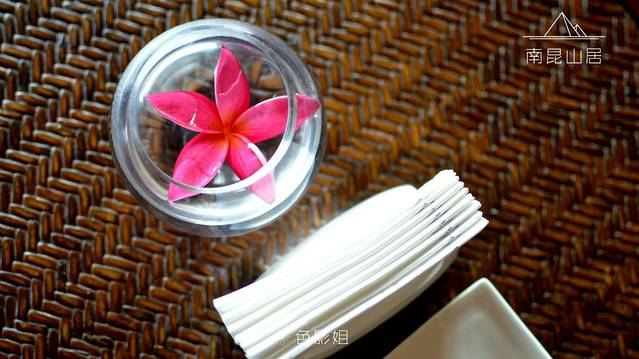 在南昆山居,随处可见红色的鸡蛋花,所以它也成了餐桌上的小饰品,鲜花,会让我的心情更美好。